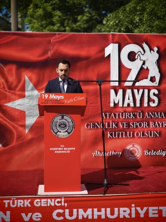 Ahmetbey kasabasında "19 Mayıs Atatürk'ü Anma Gençlik ve Spor Bayramı" töreni Ahmetbey Şehit Öğretmen Uğur Gören Çok Programlı Anadolu Lisesi tarafından gerçekleştirildi.