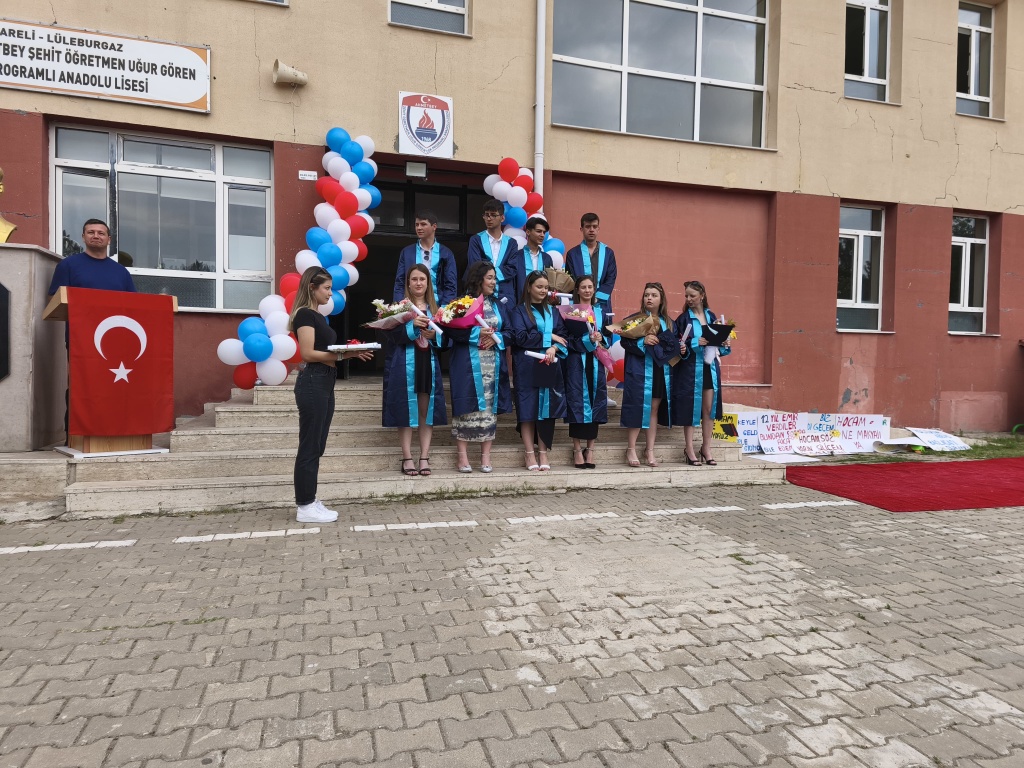 Ahmetbey Şehit Öğretmen Uğur Gören Çok Programlı Anadolu Lisesi 2024- 2025 Eğitim Öğretim Yılı mezuniyet töreni yapıldı. Bu yıl okulumuzdan 11 tanesi Anadolu Lisesi, 2 tanesi Meslek Lisesi kısmından olmak üzere toplma 13 öğrenci mezun olmuştur. Mezunlarımızın bundan sonraki yaşamlarında başarılar dileriz. Yolları açık olsun.